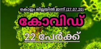 കൊല്ലം ജില്ലയിൽ ഇന്ന് കോവിഡ് ബാധിതർ 22;സമ്പർക്കം 21